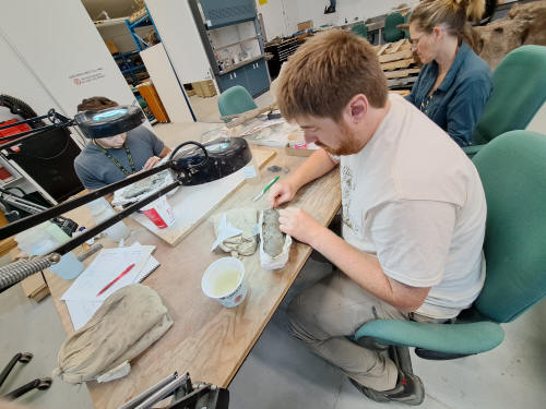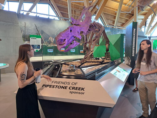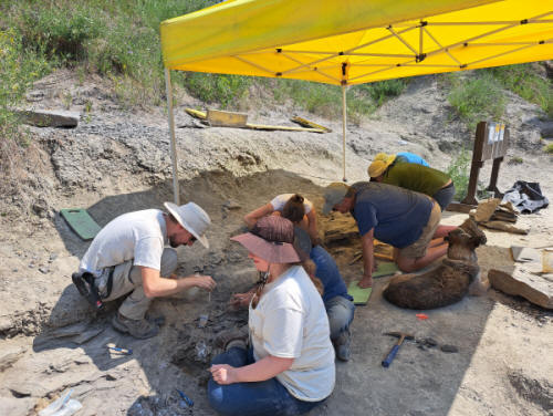 dinosaur fossils from the Pipestone Creek Bone Bed under the guidance of staff